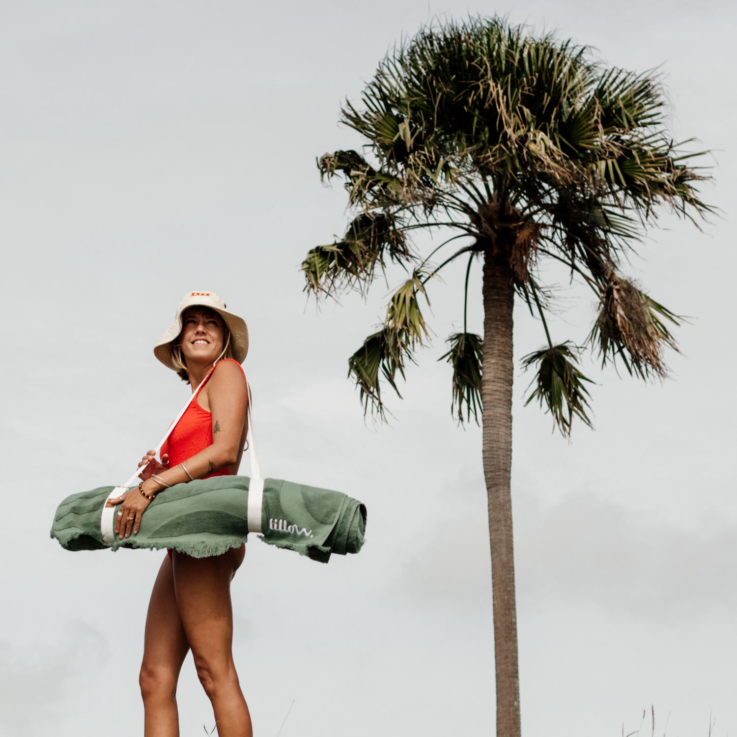 Have you ever gone to the beach and used a bag or a water bottle as a pillow? Tillow is solving this exact problem! The luxury beach towel has minimal straps sewn into sides of the sides. The bolster pillow slides into the side straps, which allows you to easily roll up the Tillow. (Similar to how you roll up a yoga mat!) Tillow carry straps allow for ease of transport to and from the beach.